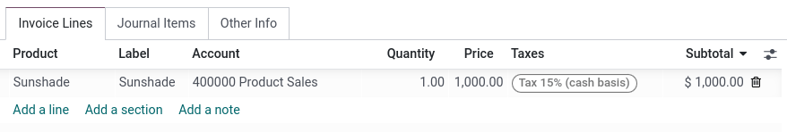 为了说明现金基础税对会计交易的影响,让我们以销售一件成本为1,000美元的产品为例,并且有一个现金基础税为15%的情况。